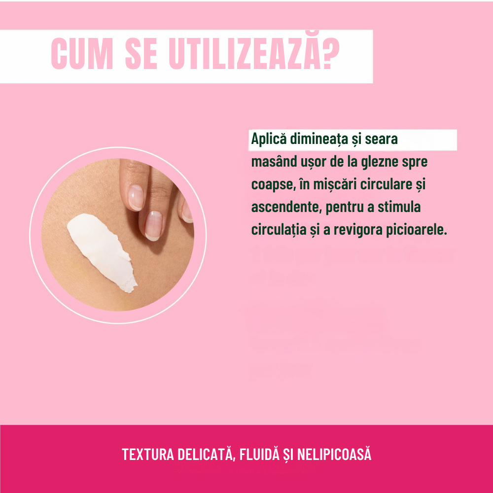 Senzație calmantă și revitalizantă: De la prima aplicare, gel-crema oferă o senzație plăcută de răcorire, reduce disconfortul cauzat de oboseală și stimulează microcirculația. Picioarele devin mai ușoare, pielea mai tonifiată, iar senzația de greutate dispare treptat.