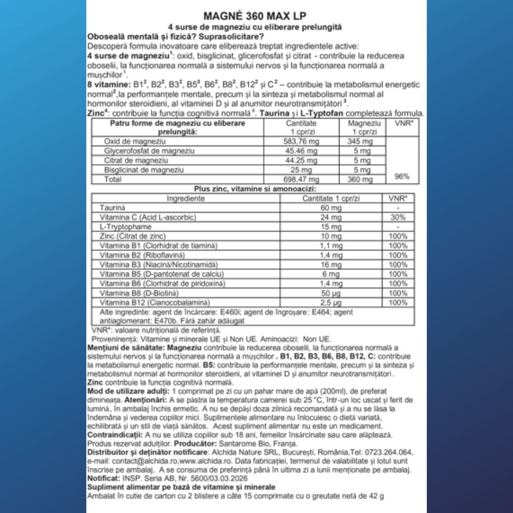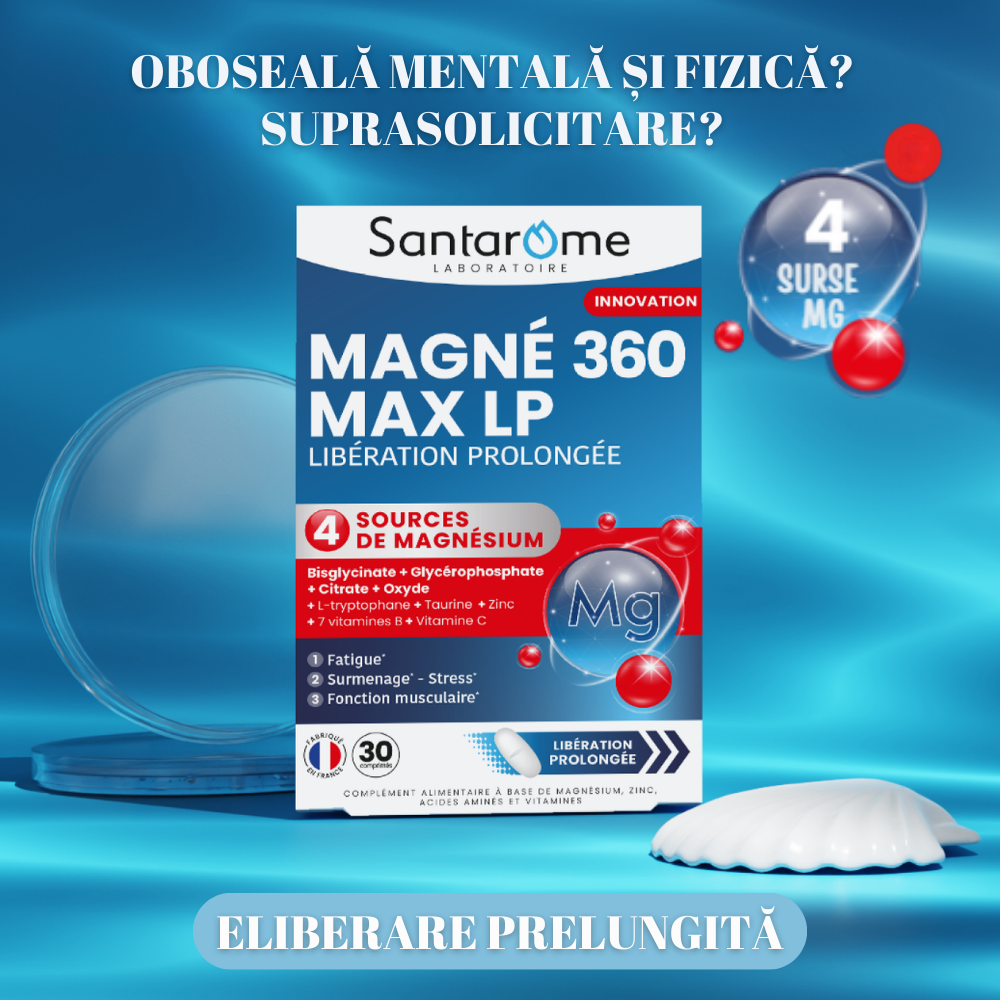 Oboseală mentală sau fizică? Suprasolicitare? MAGNÉ 360 MAX LP aduce o soluție inteligentă: o formulă inovatoare cu eliberare prelungită, care furnizează treptat magneziu și vitamine esențiale pentru corpul și mintea ta.