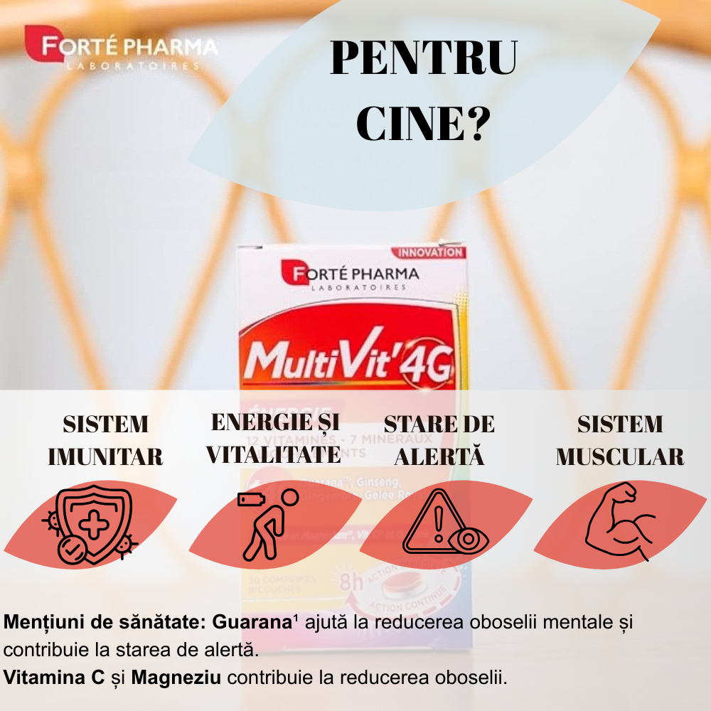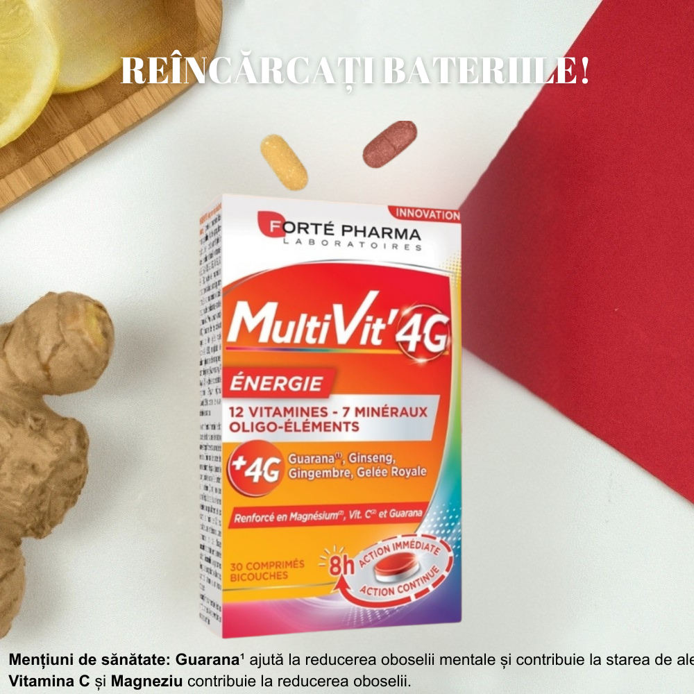 Inovația ce aduce în prim-plan secretul ingredientelor 4G: ginseng, lăptișor de matcă, guarana și ghimbir, îmbinat cu un cocktail de 12 vitamine, 7 minerale și oligoelemente. Această formulă unică oferă eliberare susținută timp de 8 ore, asigurându-ți organismului necesarul vital pentru a-și îndeplini funcțiile cu eficiență și pentru a face față provocărilor zilnice.