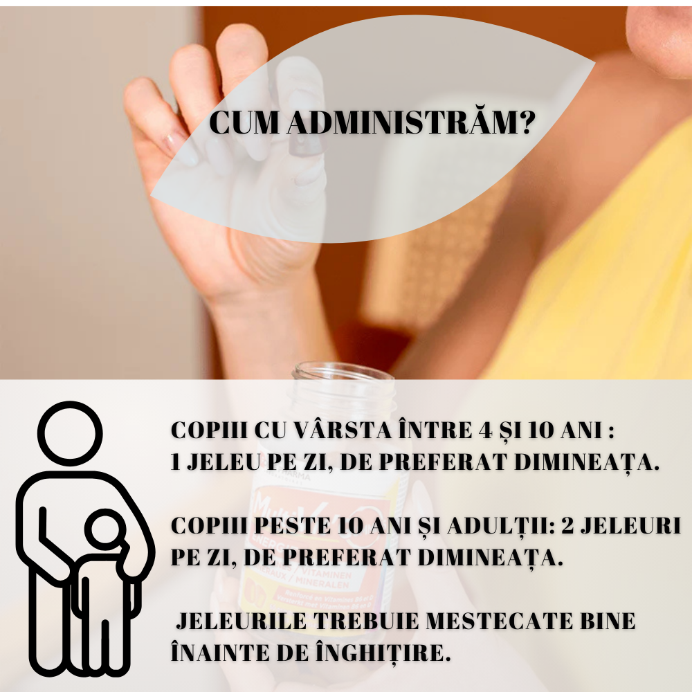 Adulti si copii de la 10 ani: 2 jeleuri/zi, preferabil dimineata.