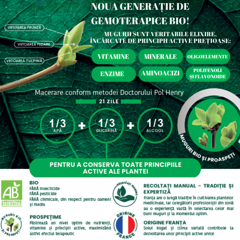 O formulă gemoterapica eficientă pe bază de 3 muguri proaspeți Bio: păducel, smochin și stejar, soluția ideala pentru a te adapta provocărilor zilnice!